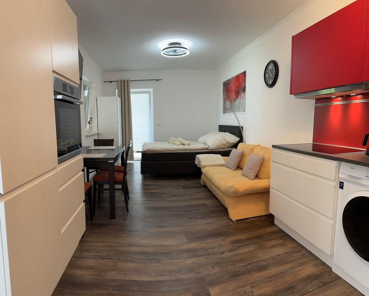 Die Wohnung befindet sich im Zentrum Wilhelmshavens, sodass Sehenswürdigkeiten, Restaurants und der Hauptbahnhof mit anliegender Einkaufspassage fußläufig zu erreichen sind. Die Einrichtung ist stilvoll und modern und sorgt mit dem offenen Wohn- und Küchenbereich für einen außergewöhnlichen Aufenthalt. Sie befindet sich im 2. Stock, weshalb sie schön hell ist. Es ist kein Fahrstuhl im Haus vorhanden aber ein Privatparkplatz direkt vor der Haustür.