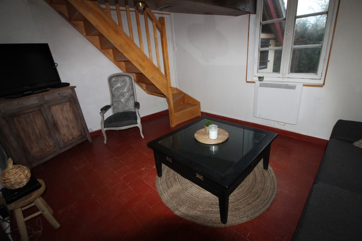Venez découvrir cette maison mitoyenne , idéalement située . Elle est composée d'une pièce de vie comprenant un coin salon (cheminée non fonctionnelle), une salle à manger, une kitchenette et un espace extérieur . A l'étage se trouve une salle d'eau (douche) une chambre avec lit double (140×200) et une deuxième avec un lit double (160×200) avec dressing et placard. Pour finir ce logement est situé à proximité des commerces ,de la gare et un parking gratuit se trouve juste à côté de la maison .