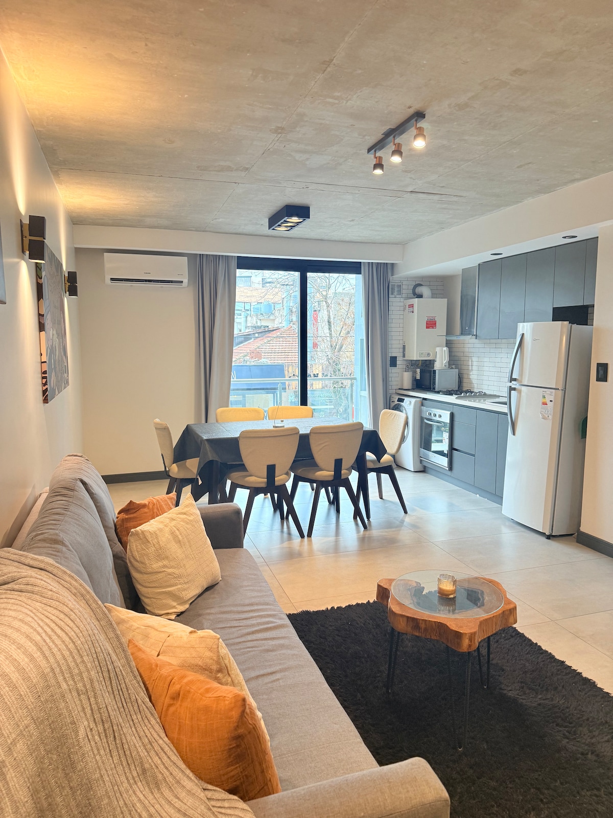 Es un departamento pequeño,de 2 amb,con vista al contrafrente. Con equipamiento sencillo y básico como si fuera el hogar de un estudiante universitario. IDEAL PARA PAREJAS, GRUPO FAMILIAR, PEQUEÑO: 2 adultos y 1 niño, O VIAJERO SOLITARIO. El baño y la cocina están en su estado original. Los utensilios tienen sus buenos años, pero funcionan correctamente. Posee termo eléctrico, AACC frío/calor, cocina y horno a gas Tiene Wifi TV led con Google tv Tiene heladera nueva con freezer