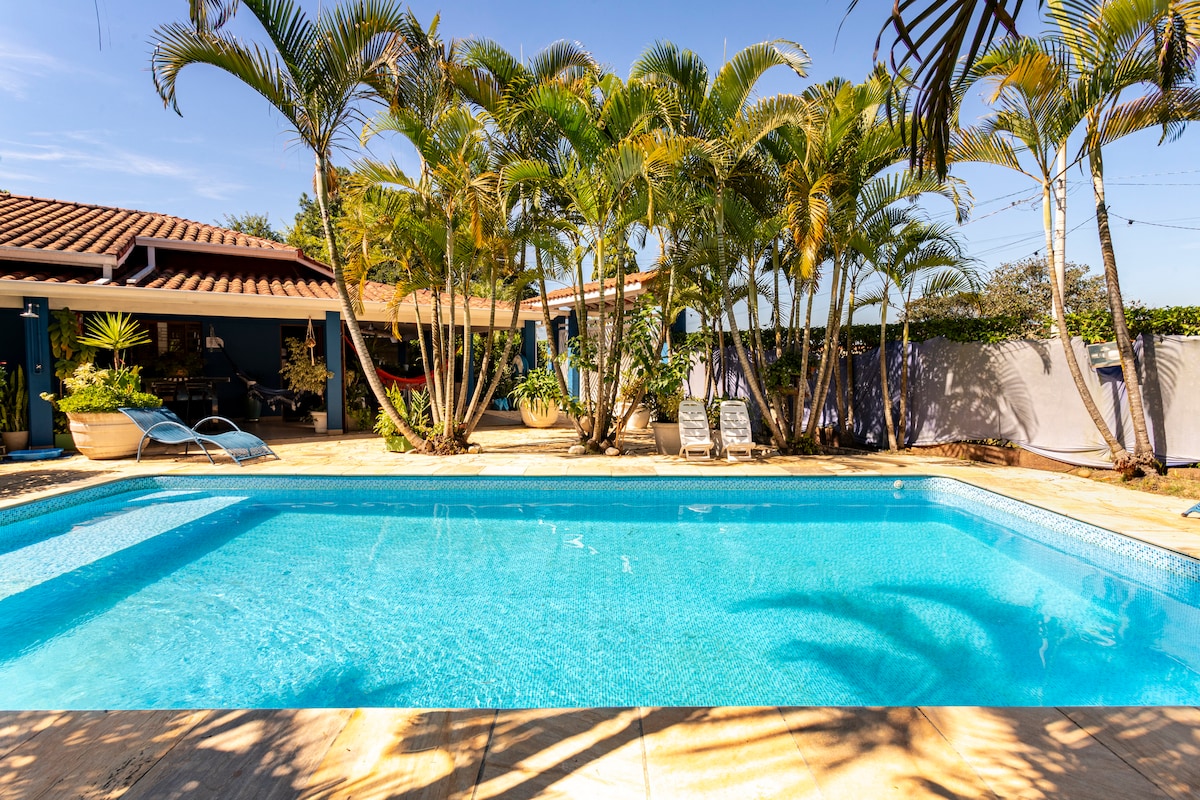 Leve toda a família a este ótimo lugar com muito espaço para se divertir. Chacara familiar bem conservada com 5 quartos, area ampla e próxima a casa com churrasqueira, mesa de bilhar e forno de pizza. Espaços integrados, piscina, campo, casa, deck, horta e espaço gourmet. pet friendly.
