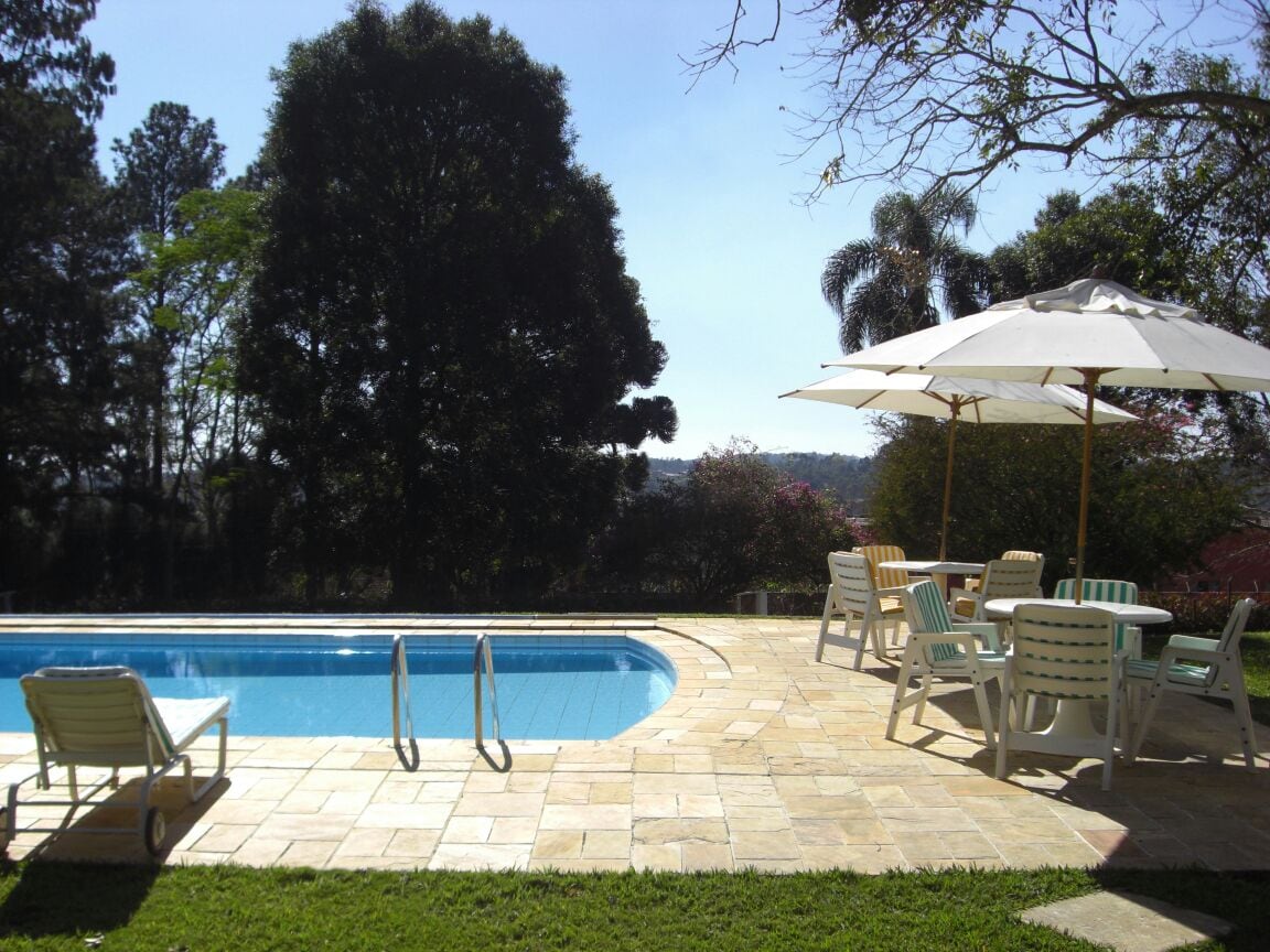 Relaxe com a família nesta chácara com vista privilegiada! Estamos a 50 minutos de S.Paulo e pertinho de S. Roque, estância turística com diversas atrações e bons restaurantes. Clima de montanha. Temos piscina, churrasqueira, lareira, TV, Wi-Fi (fibra), mesa de bilhar, varanda c/ rede e área de lazer. Local com vegetação exuberante, árvores frutíferas, horta, animais domésticos, silvestres e variedade de pássaros. Rua sem saída, apenas uma entrada dando aos moradores segurança e privacidade.