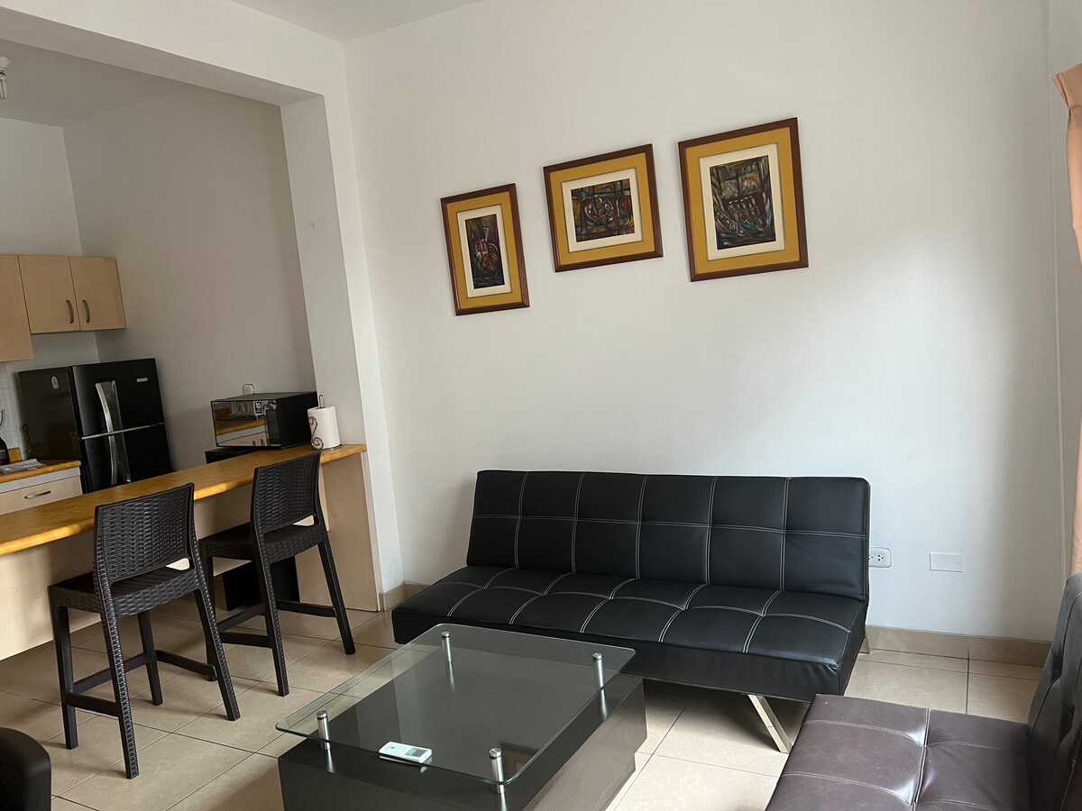 Apartamento independiente, seguro y moderno. Disfruta de una estancia confortable. Su diseño elegante incluye una acogedora sala de estar, cocina totalmente equipada, y las plantas de interior dan un ambiente fresco y relajante. Cuenta con Wi-Fi, televisión y aire acondicionado. Situado en el segundo piso con ingreso privado. La ubicación céntrica facilita el acceso a los puntos de interés de la ciudad. Es ideal para viajeros de negocios o de placer que buscan comodidad y estilo.
