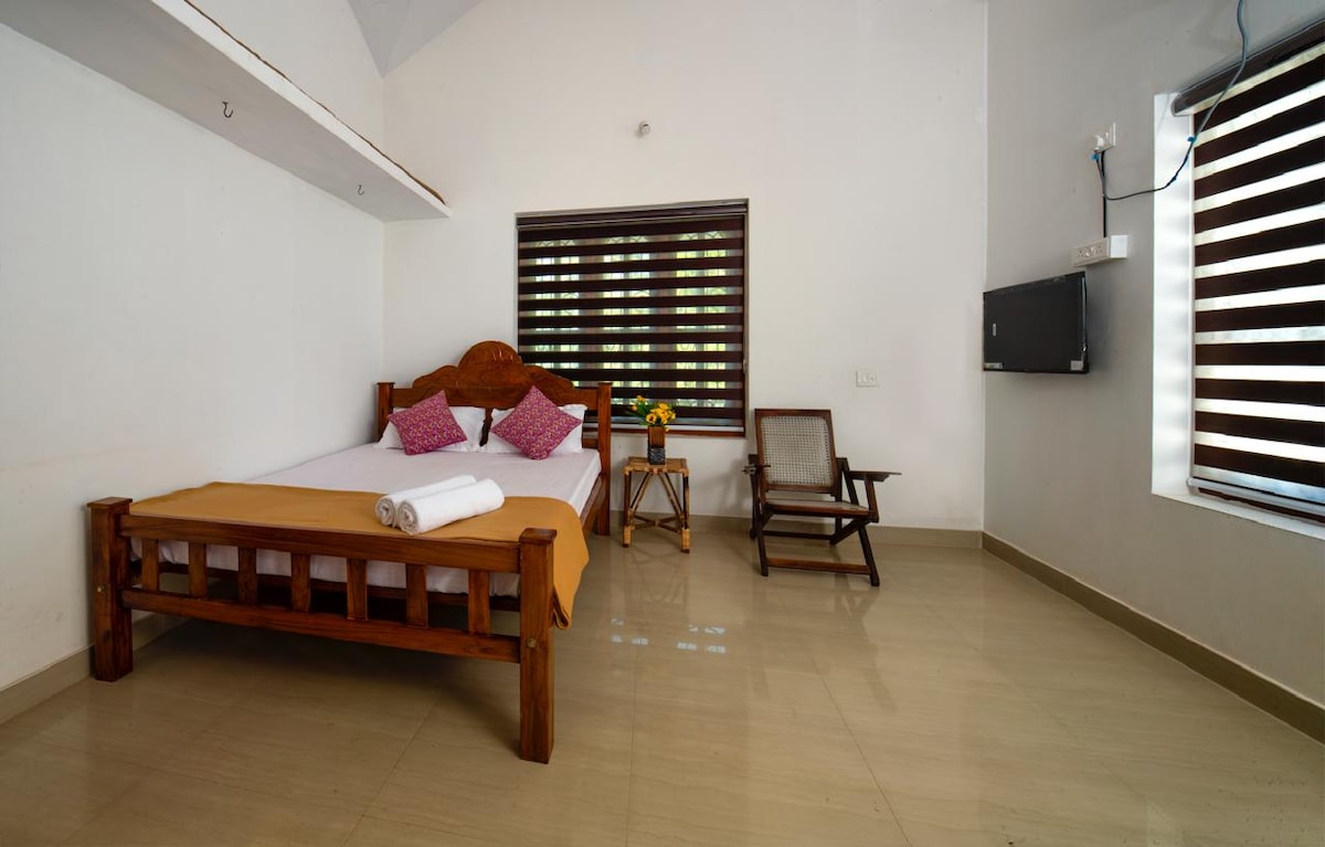 🌿 Your peaceful cliffside hideaway by the sea Welcome to Nidra by Sarwaa—a serene, standalone sea-view cottage with private access to Varkala Beach through Café Sarwaa next door. Surrounded by tropical trees and birdsong, this airy retreat features earthy interiors, a cozy sit-out, and ocean glimpses from your bed. Wake to golden light, unwind with nature, and fall asleep to the sound of waves. Ideal for solo travelers, couples, and remote workers.