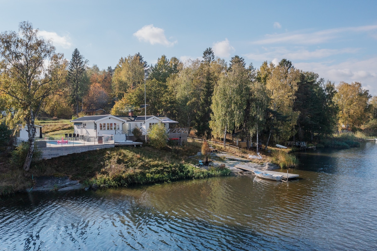 House by the sea on a jetty👍Enjoy the hot tub and wood-burning sauna. Fantastic outdoor environment. Modern and fully equipped house, tastefully decorated. Perfect experience for those who want to have a relaxing and beautiful time on the water🌞 If you want to be active: canoe, hike in the nearby national park, go for a run or go boating. All this just 30 minutes from Stockholm! Imagine spending a few days or weeks in this environment 😀 - All space is privately available to you as guests.