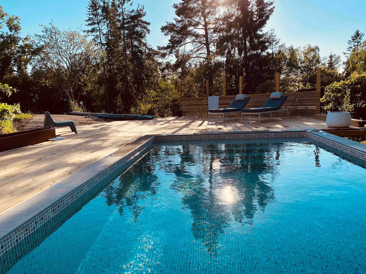 斯德哥尔摩群岛的现代泳池别墅