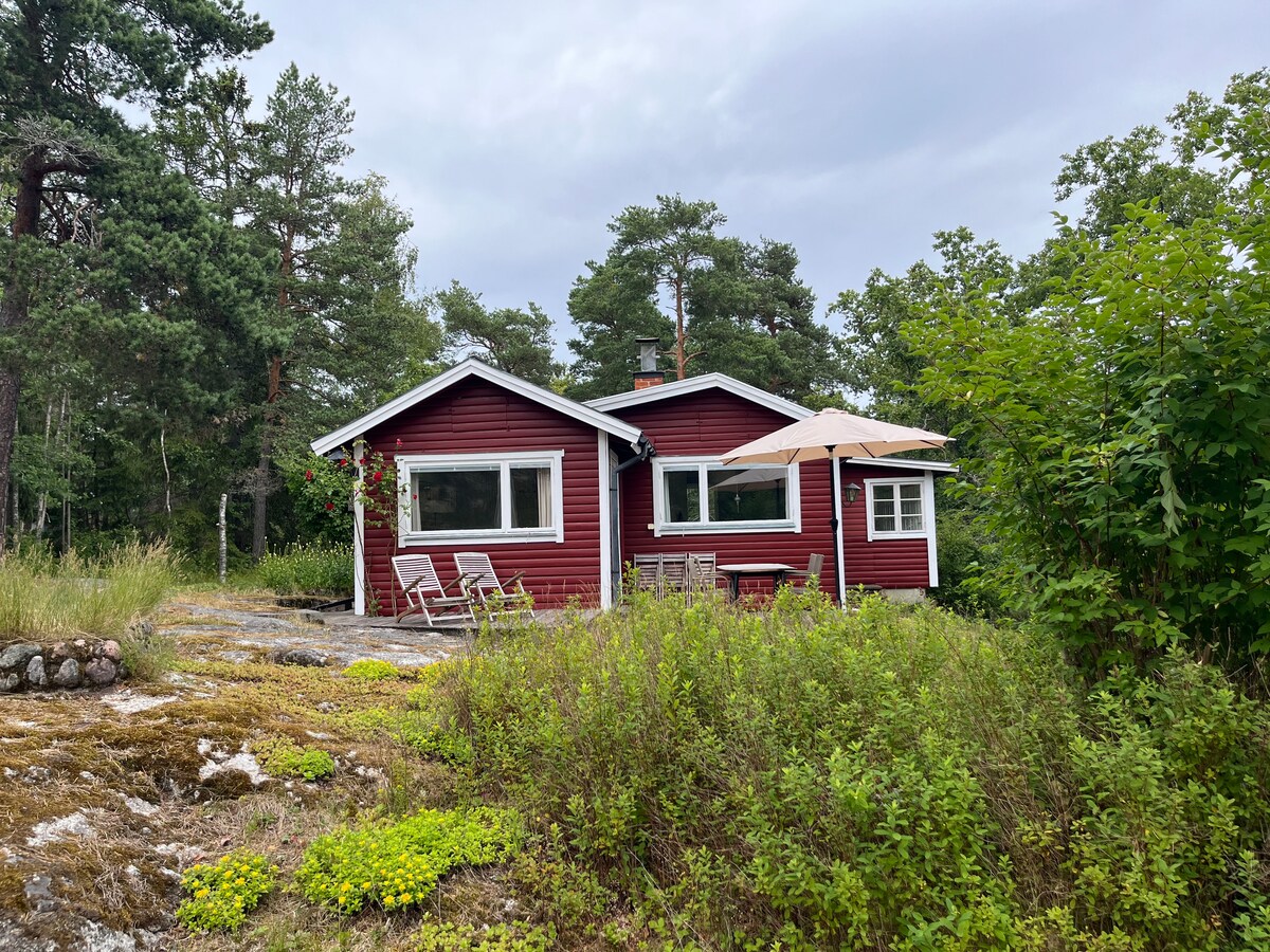 Welcome to this two bedroom + bathroom cottage facing a stunning southerly view over the archipelago of Stockholm, and with a private jetty for swimming and relaxing. Attached mountainbikes/bikes, kajaks, sauna and hottub are for guest disposal. Suitable for couples or the small family to enjoy a relaxing stay at the port of Stockholm, with nature at your doorstep. Private sitting area outside cottage, with fully equipped outdoor kitchen, barbecue possibilities and view over the ocean.