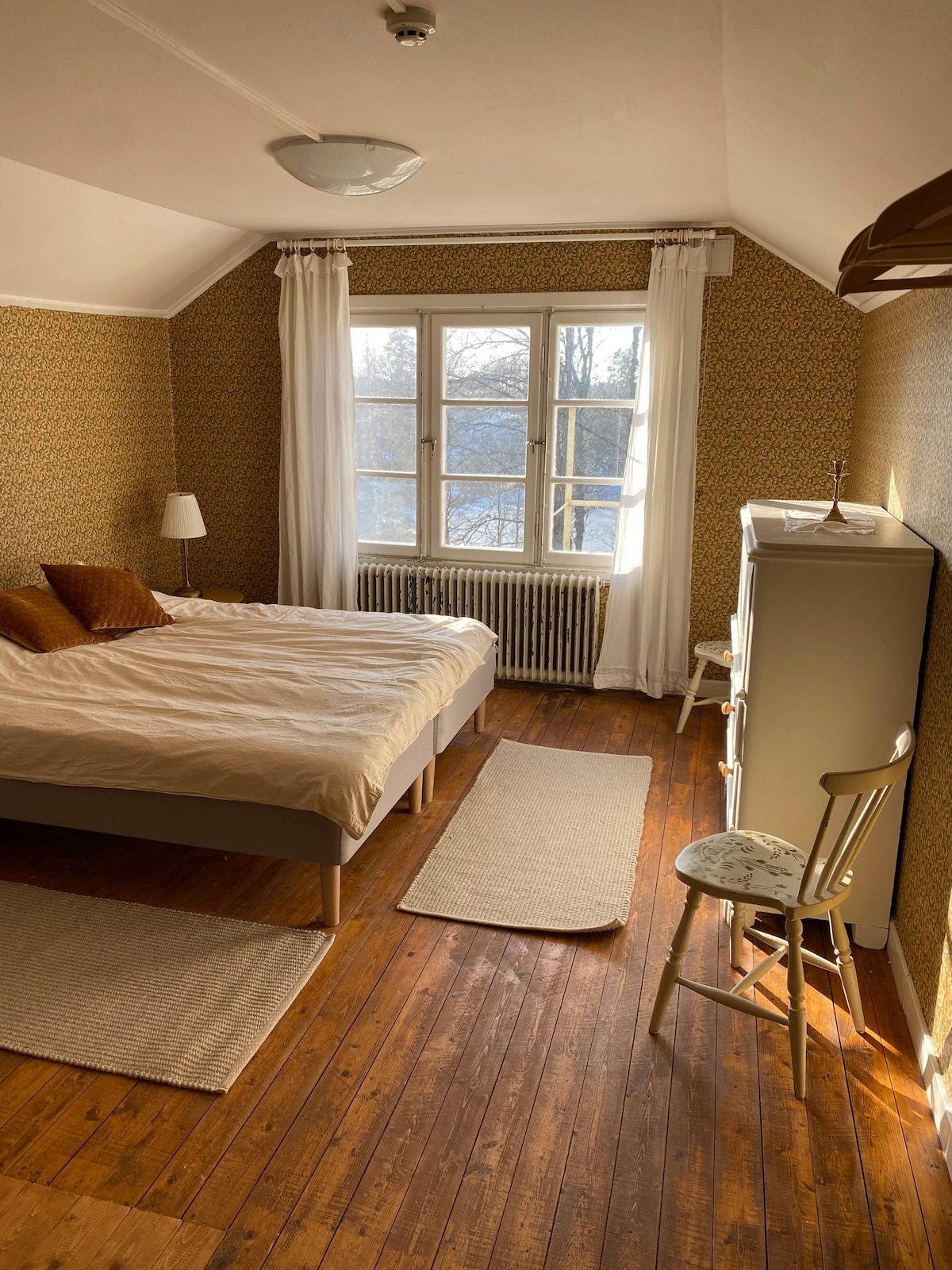 Welcome to the west facing apartment of the Rustic Haven house! Relax and enjoy your own fully equipped private apartment with a full bathroom, newly renovated kitchenette, Chromecast TV, a grass patio and beautiful views of the yard and nearby forest, which sets a calming tone for your stay. We provide bedding, towels and some firewood. Breakfast is available for 130 SEK per person which will be delivered to your door at the time you request between 7-9:30am.