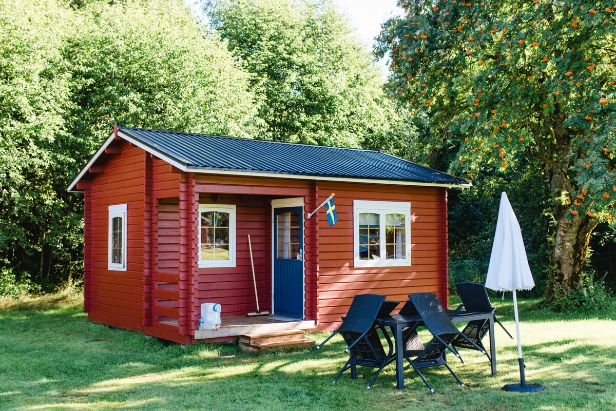 Our cosy cabin near the woods, is located just outside the center of Sunne. A perfect spot for one or more nights while travelling around Sweden. You'll sleep next to the forest, 50m from our home, where there's always someone to welcome you. If you're lucky, you may spot moose and deer from your own private terrace. A brand new separate bathroom is located in the barn, about 50m away from the cabin. Pets are not allowed.