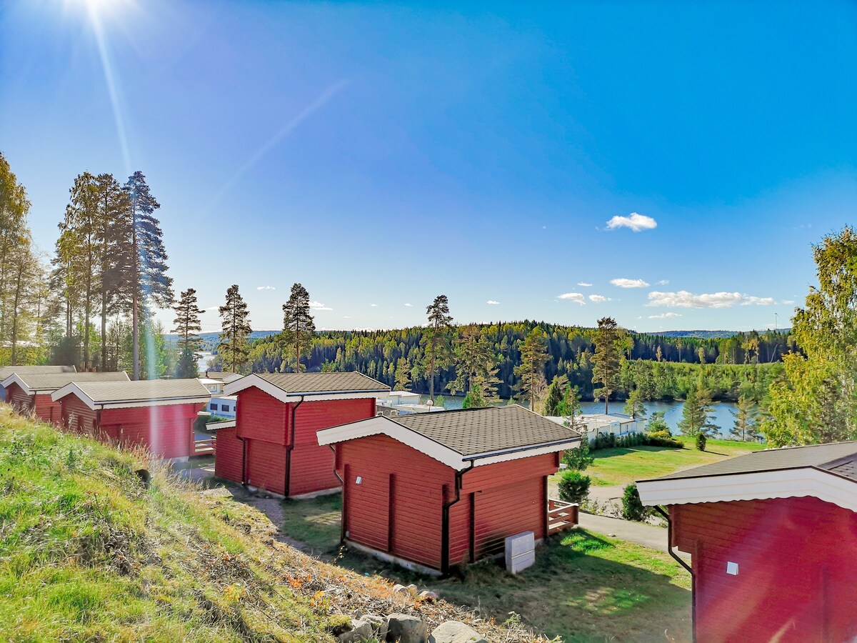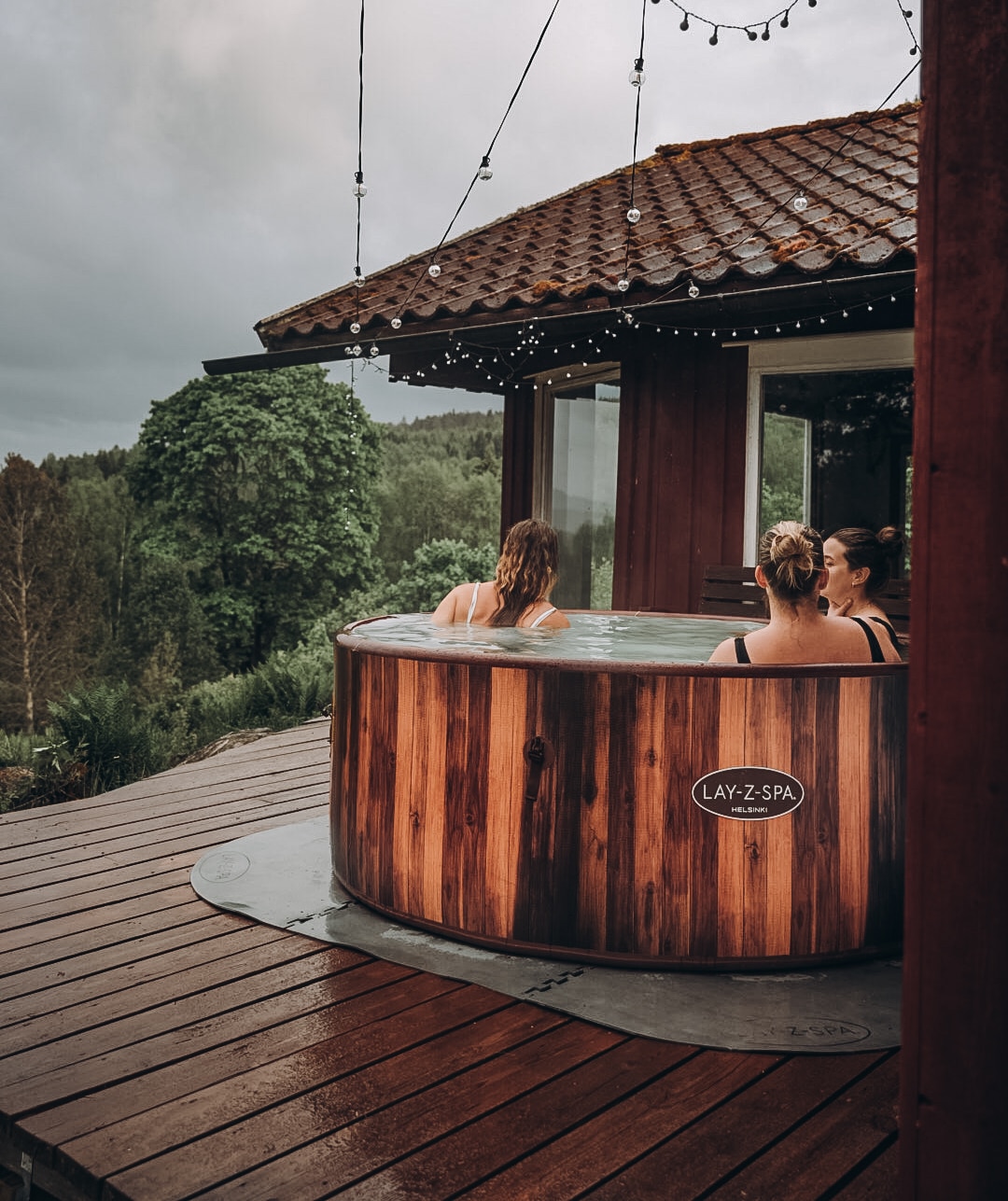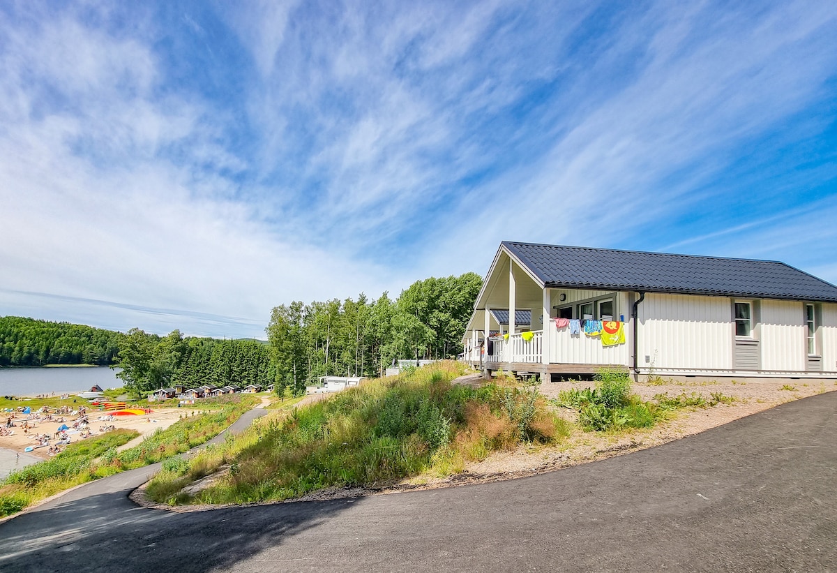 Welcome to our cozy cabin! Nestled by the edge of a peaceful pool, you'll find a hot tub that comfortably accommodates up to five people, offering a stunning panoramic view of the lake. The jacuzzi and sauna is available year-round. The swimming pool is open until 6th of October, perfect for cooling off during warmer months. We also provide two paddleboards. Nature is just outside your door and in the evening you will watch the sun set over the lake. We look forward to welcoming you!