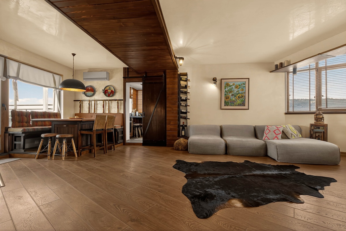 Nestled among majestic pines, just a 10min drive from the Black Sea beach, the Sea Forest Dome is your perfect getaway. Our eco-friendly wooden Dome blends seamlessly with the Mediterranean pine forest around it. Spanning 150 square meters over two floors, it offers modern comforts with rustic charm, including a fully equipped kitchen, an 8-person dining table, a fireplace, and hammocks between the pines. Enjoy a truly special retreat in this serene forest haven!