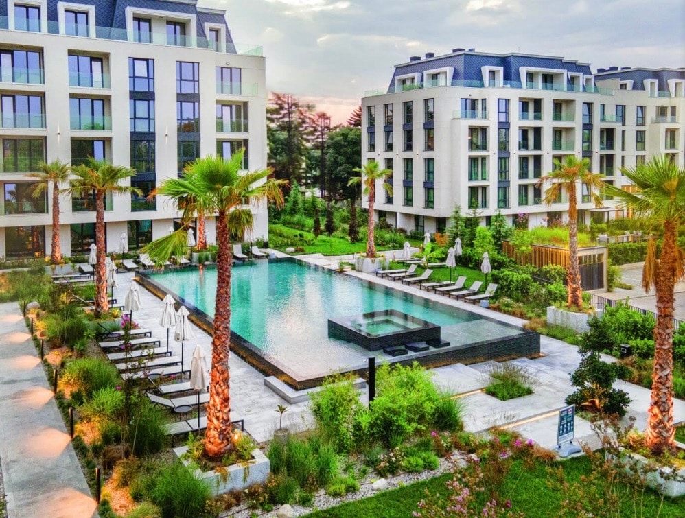 Sea Garden! Luxurious and won the prestigious BUILDING OF THE YEAR award! The walls and ceilings of the apartment are finished with environmentally friendly coatings. The floor is madeofoak. The toilets in both bathrooms are combined with an optional bidet. One bathroom has a bath and the second has a shower with massage. All rooms have air conditioners and smart TVs. The kitchen is equipped with high-end appliances, including a washer and dryer. Parking space for free in the underground garage.