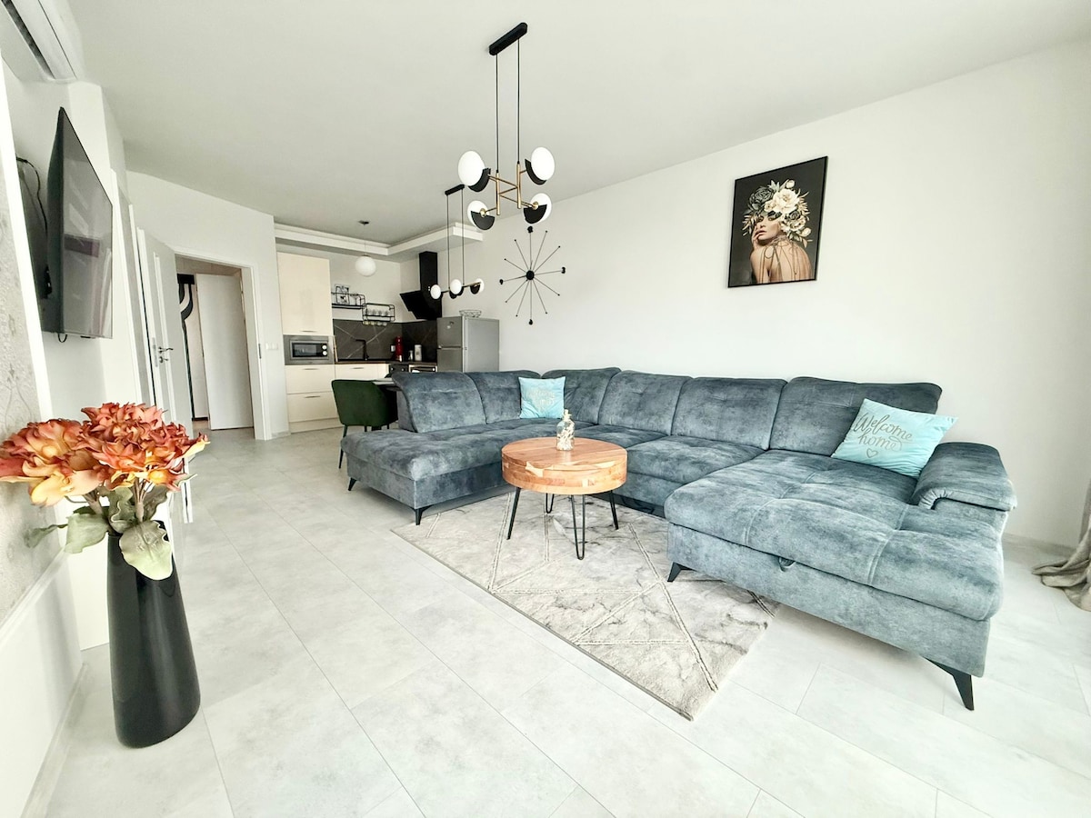 Modern apartment in a quiet location, situated 4 km from the city center, 3 km from the beach and 2.5 km from Grand Mall. It has fully equipped kitchen, Wi-Fi and TV cable and air-conditioning. Suitable for 4 person (2 on double or single bed by request in the bedroom and 2 on extandable sofa in the living room) The parties are not allowed. Please, respect the neighbours! Just relax yourself and enjoy of the city!