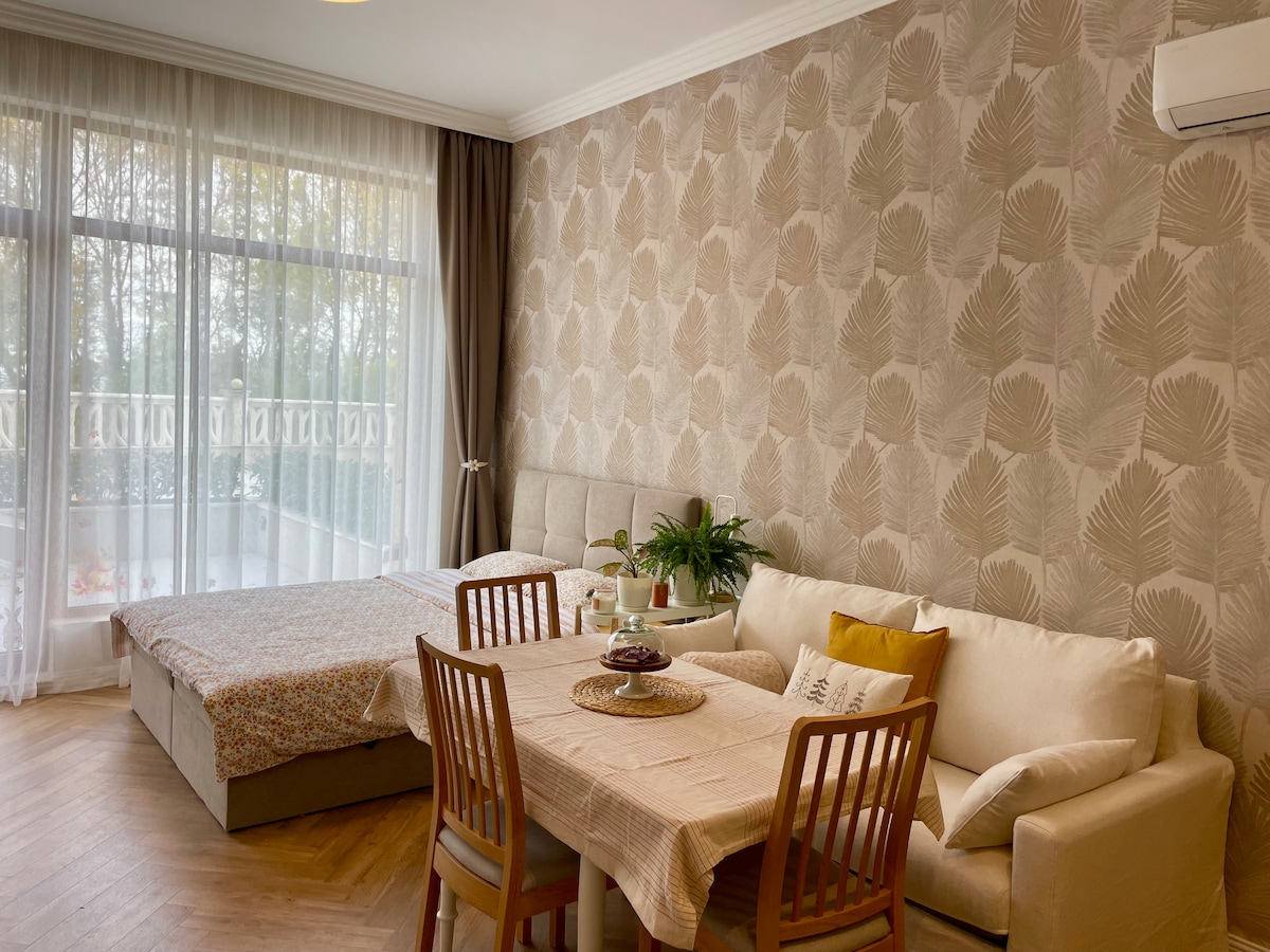 Come and enjoy our cozy studio in the ideal and historic city center of Varna! You will be just a 3 walking min from the main pedestrian area and 3 walking min from the beach. We are located 2 minutes away from the Sea Garden, sea restaurants and clubs. The famous Roman Thermae (the 3rd biggest in the world) are 5 minutes walk. 24/7 supermarket - 1 min away Train station - 10 min walking distance Bus station - 40 min walking/ 15 min by bus/ 10 min by taxi Airport - 30 min by bus/ 15 min by taxi