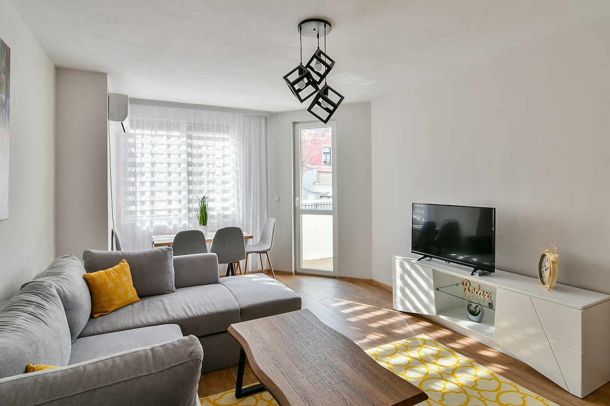 Welcome to your home away from home in the absolute heart of Varna. This stylish one-bedroom apartment is flooded with natural light, tastefully furnished, and located in a prime location perfect for city explorers or business travelers. With a soft color palette, cozy living area, fully equipped kitchen, and private balcony, it offers both comfort and functionality. Whether you're in town for a few nights or a few weeks, you’ll feel right at home here.