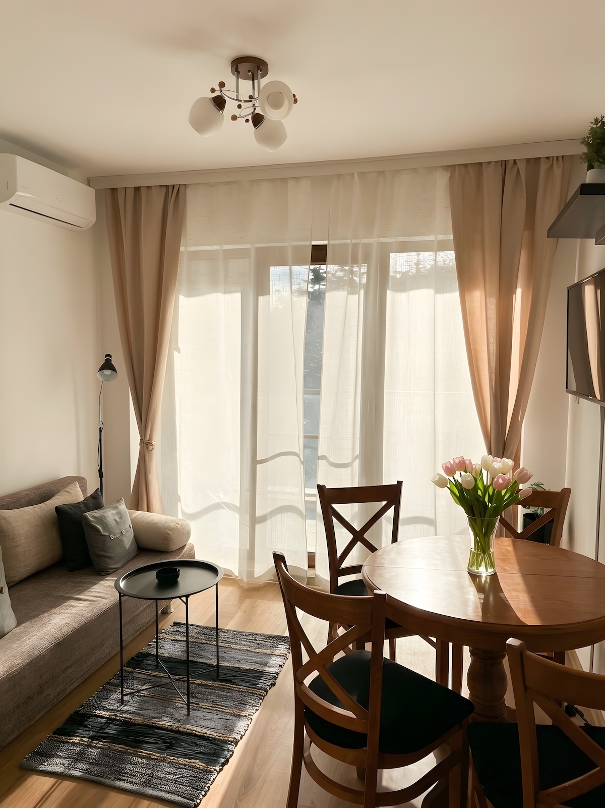 The 45 sq.m. apartment, small, but real "jewel"- inside you can find everything you need for a full stay and carefree vacation. It is located on the second floor of a building from the 60s, without an elevator. Modernly furnished with attention to detail. It's location allows you to be minutes from all the entertainment, the beach ⛱️, night life 🍸 of Varna, at the same time you are only 10 minutes walk from the center and the pedestrian zone.