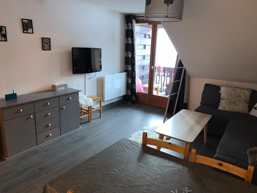 Studio cabine (32m²) à 80m du front de neige et du parking couvert. 5 couchages : coin nuit, fermé par des rideaux occultants : 1 lit 2 pers et 1 superposé 1 pers. salon : clic-clac 2 p Spacieux séjour avec cuisine équipée (micro-ondes /four-grill , cafetière senséo, appareils raclette et fondue, LV, TV, Wifi ; Balcon S/O. Magnifique vue sans vis à vis. Douche, WC, sèche-cheveux, fer. Casier à ski / vélo (2) Linge de lit, toilette, produits ménagers et de toilettes fournis. Ménage inclus.