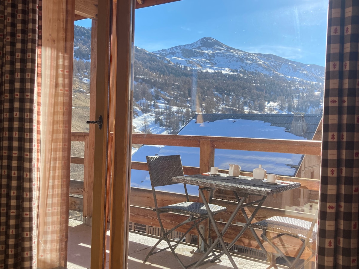温馨4人房源,位于Les Orres 1800,带泳池、无线网络、车库和床上用品