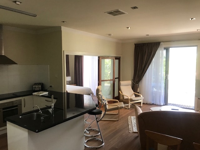 This cozy one-bedroom apartment adjoins our house and features its own entrance and private courtyard. It is adults only. Location: 15-minute walk to Robina Town Centre with shops, cinemas, restaurants, cafés, bars, and al fresco dining. 20-minute walk to Cbus Stadium and Bond Institute of Health & Sport, directly opposite Robina Train Station. Bus stop nearby. To Bond University (3.5 km) requires one bus transfer. Bus trips to the beaches (from 8km away) take approximately 45 minutes.
