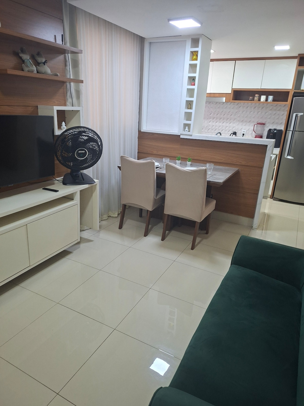 Apartamento novo com: cozinha completa ar condicionado no dois quartos wi-fi + tv smart 42' * roupa de cama inclusas Áreas comuns do condomínio: piscina playground portaria 24h mini mercado Campo sintético Estacionamento privativo (1 vaga)