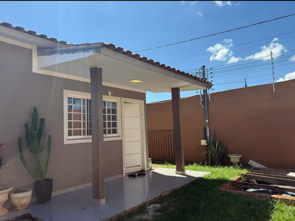 Casa com 1 quarto (ar-condicionado e cama de casal), Wi-Fi, quintal com piscina e churrasqueira. A cozinha é prática e funcional, equipada com geladeira, liquidificador, bebedouro com água mineral, panelas, pratos, copos e utensílios básicos para preparo de refeições simples. Localizada em um bairro tranquilo e arborizado, ideal para descansar, a apenas 5 km da UFMT, 9 km da Rodoviária e 15 km do Aeroporto.