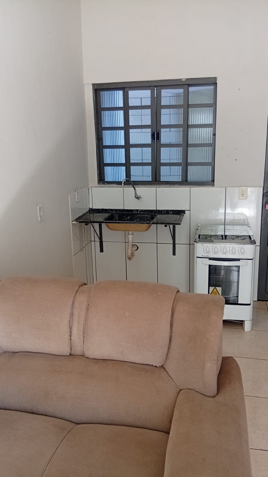 Suíte aconchegante e compacta, privativa e independente em um pequeno condomínio, com cama de casal para uma ou duas pessoas, ar condicionado, wifi e mini cozinha com fogão elétrico. Possui acesso a uma área livre e comum (trânsito de outras pessoas) com cozinha completa que possui geladeira, microondas, televisão, churrasqueira e um rooftop com pergolado e redes de balanço, caso necessário possui lavanderia. Não há estacionamento/garagem na propriedade.