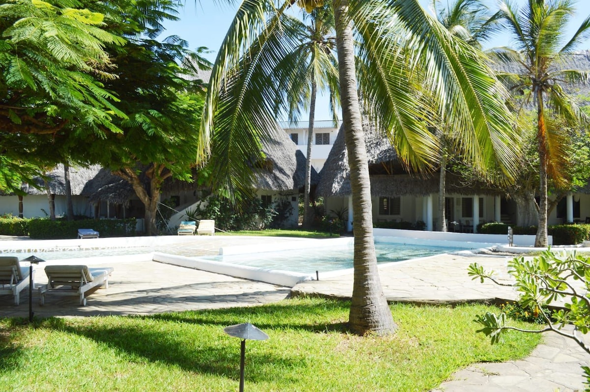 It's a Traditional 2 levels Swahili Cottage part of a serene compound with security guards, very friendly staff and 2 nice pool around the house. The compound is situated in a quiet area of Malindi, 100m from a peaceful and noncrowded beach. There are many supermarkets, Night Clubs, Bars, Restaurants, shops around. You have at your disposal a ground floor of the Cottage. The second level can also be found in Airbnb. Note! At the moment one neighbor's houses in the compound is under renovation.