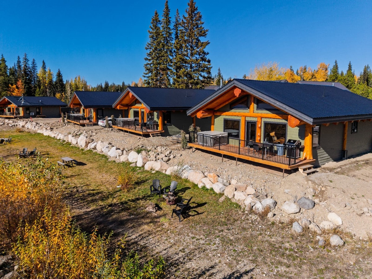 Cozy little cabin. 400 sqft. Kitchenette w/ induction cookplate, cookware, mini fridge, microwave, kettle, french press coffee maker, & toaster. Bedroom w/ queen bed. Two twin daybeds. Semi forest surround. Large hot tub, fire pit, mini propane BBQ. View of city and lake at viewing spot (1 min walk from cabin). Adjacent to crown land, with endless walking & bike trails. Scenic 15 min drive up the hill from town; 20 mins to lakes. Option to rent 3 cabins; check our other listings.