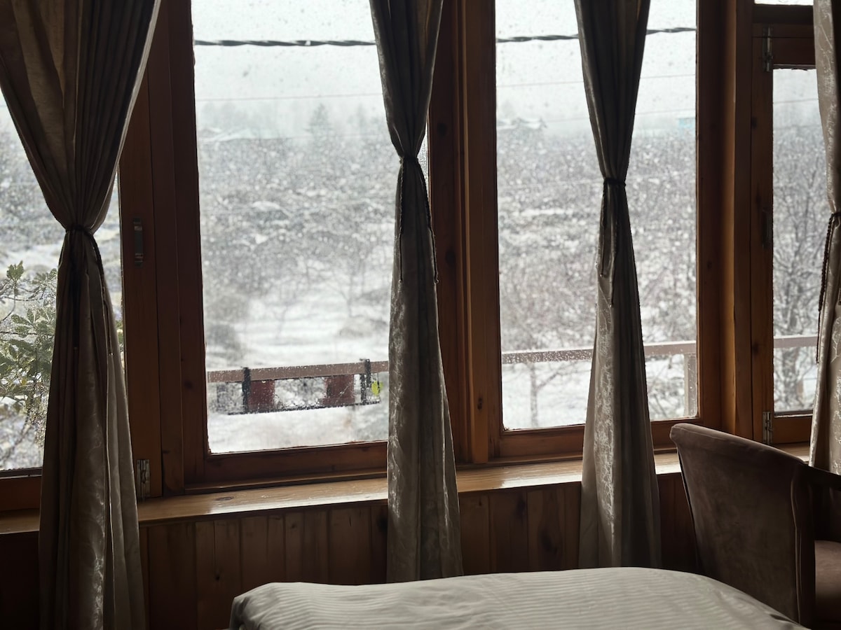 What you get : Private 3BHK Floor | Private Balcony | Mountain View | Smart LED TV | King size beds with an 12" inch mattress | Attached washroom | Electric Kettle | Work-friendly space with chair | Cozy Living/Lounge area Breakfast : Rs. 200 per person/day There is an in-house Chef and A La Carte Menu to enjoy delicious food. Our rooms offer beautiful panoramic views of the valley , snow capped mountains, spring waterfalls , Apple orchards and nearby beautiful trails for a nature walk.