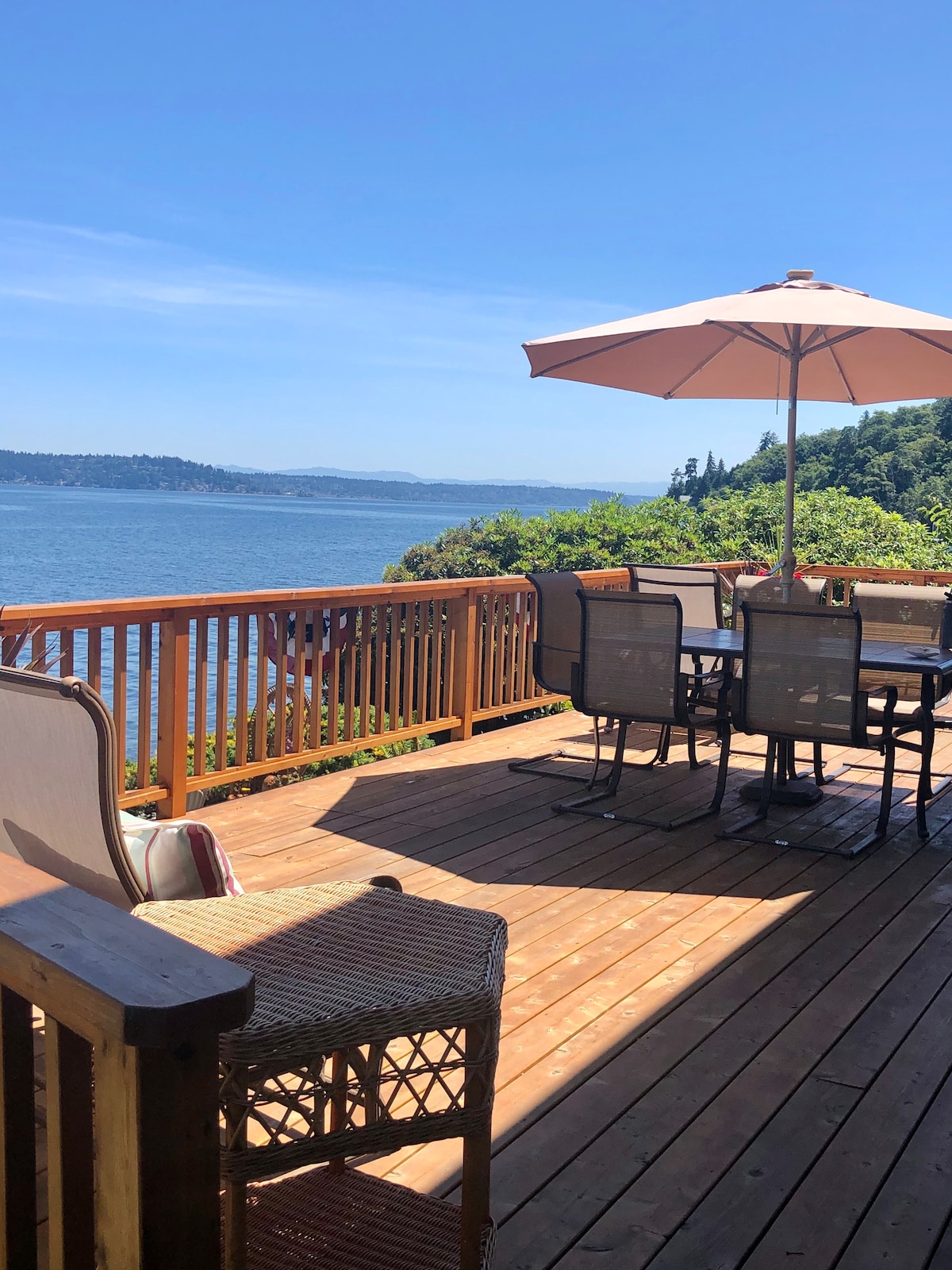 This jewel of an island is located a quick 20 minute ferry boat ride from Seattle but is a paradise getaway from the bustle of life. The house, comfortable but elegant, has a truly breathtaking panoramic view of the Puget Sound and a private deck where you can sit back and watch the sun rise or set. Please Note: Because of Covid-19, we stipulate one day between the departure of a guest and the arrival of the next guest to allow our housecleaner adequate time to safely clean the house.