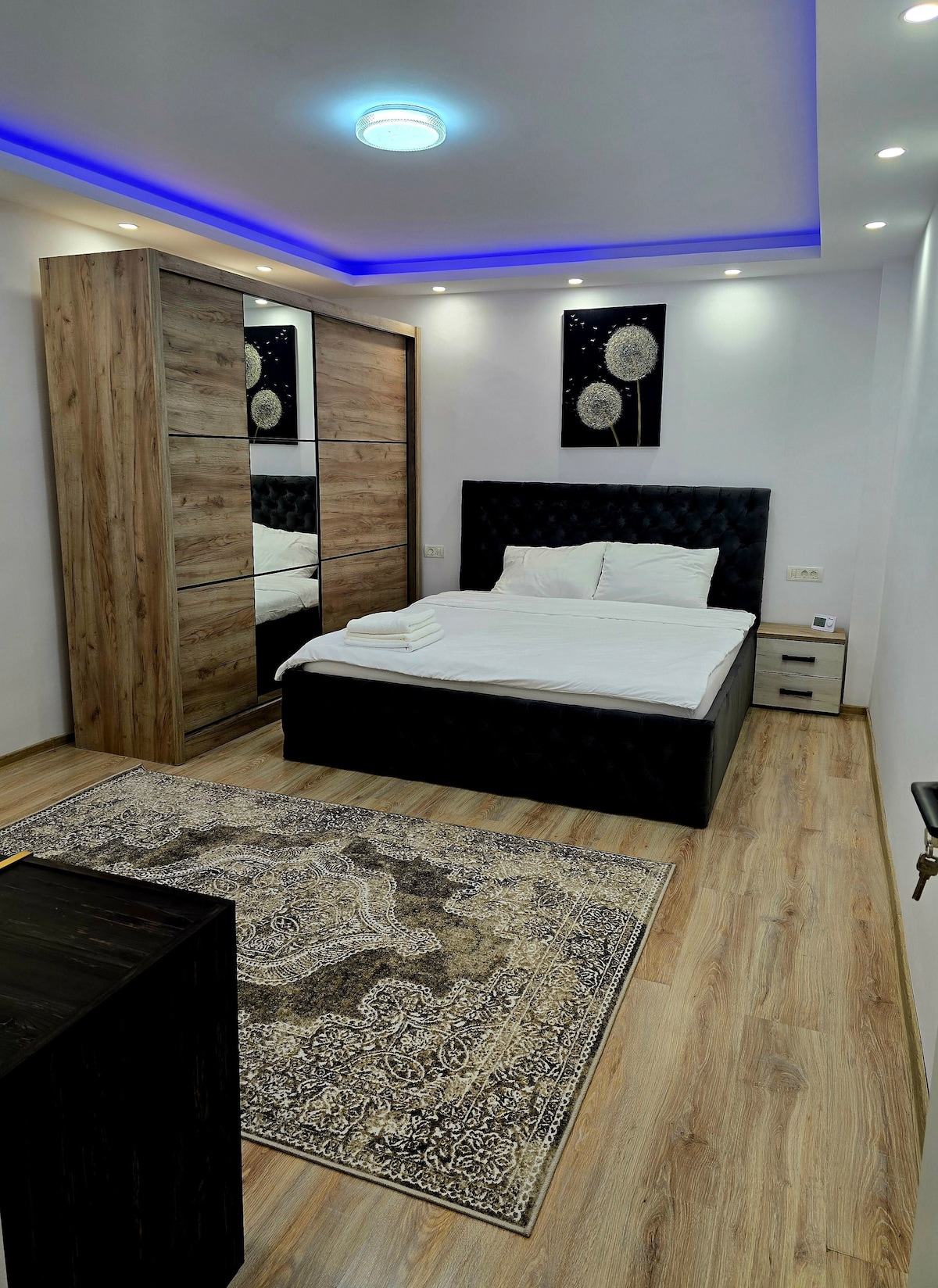 Apartamentul are 3 camere plus o sufragerie , 2 băi , bucătărie complet echipată , maşină de spălat , aer condiționat , internet wi-fi , un balcon. Complet echipat şi utilat , pregătit să primească până la 8 persoane odată. Perfect pentru familie numeroasă sau pentru grupuri de muncitori. Situat la etajul 1 , într-un bloc foarte liniştit , departe de zgomotul străzii.