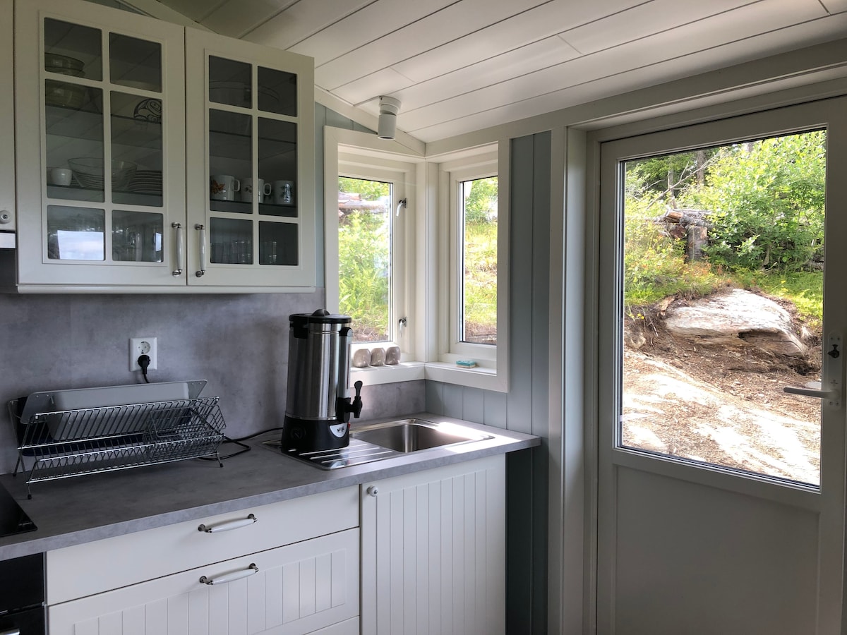 Unique sea front cabin. Very modern and fully equipped. Amazing view over the fjord. The cabin is located 10-15 min outside the city center, with bus departure every hour. Bus stop 1 min away. The cabin is 28 m2 big and is available for up to 2 people. Upstairs mezzanine with a ladder-accessed bed and a comfy sleeping couch below. Free parking by the road and only 1 minute walk down a small hill to the house. The jacuzzi cost extra to use, depends on how many days. No smoking and no parties.