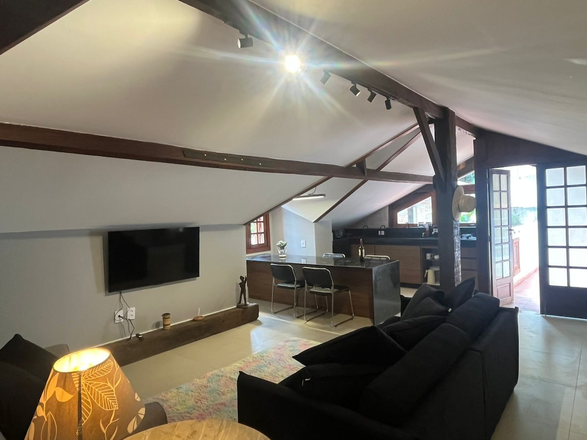 Cerque-se de estilo neste espaço excepcional. Construído e 1.000m de altura, com vista deslumbrante aberta. Lugar para relaxar e curtir momentos a dois. Construída em 2025, com pé direito de mais de 4 metros. Tornou-se um ambiente aconchegante e único, com uma lareira ecológica que divide os ambientes de sala e quarto, com uma grande cama king size com massageador, além de um banheiro cinematográfico. Com vista deslumbrante para um banho em banheira de imersão com sais de banho.
