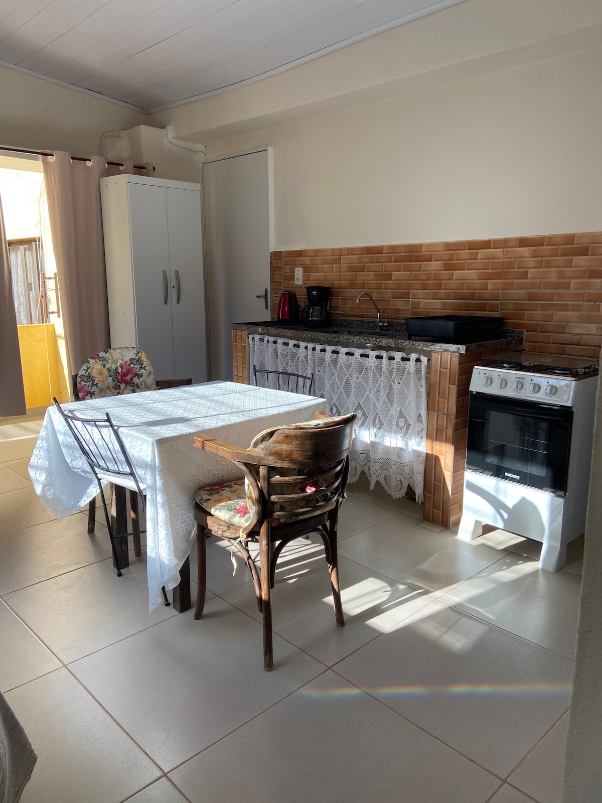 O grupo terá fácil acesso a tudo o que precisar neste lugar com excelente localização. Cozinha com pratos, talheres, panelas, copos, xícaras, micro-ondas, cafeteira. Ótimo espaço para quem precisa trabalhar ou estudar na cidade, para conhecer os principais pontos turísticos ( cachoeiras, trilhas, parapente, lago de Javary, etc)e participar de possíveis eventos, como a festa do tomate no municipio vizinho. O apartamento tem um lance de escadas. Ficamos há 700 metros da rua coberta.