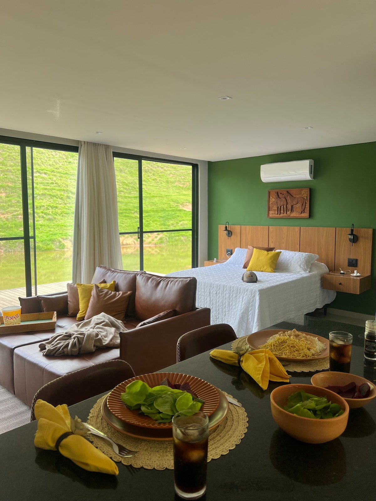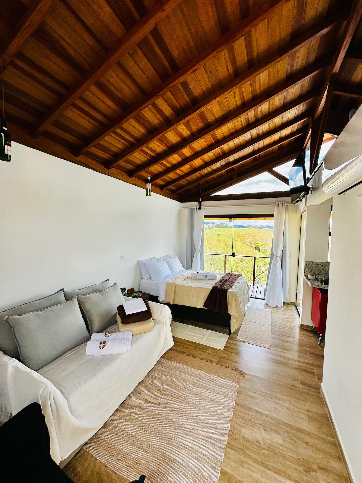 Um convite para a pausa, nossa Cabana foi pensada e projetada para você se sentir confortável num espaço rústico e acolhedor completamente imerso a natureza. A casa tem vista para as montanhas 360 graus. O pôr e o nascer do sol é um show a parte. Nosso banheiro possui teto de vidro o que permite uma experiência de apreciar o céu enquanto toma banho. E uma piscina de borda infinita onde vc desfruta nas montanhas.