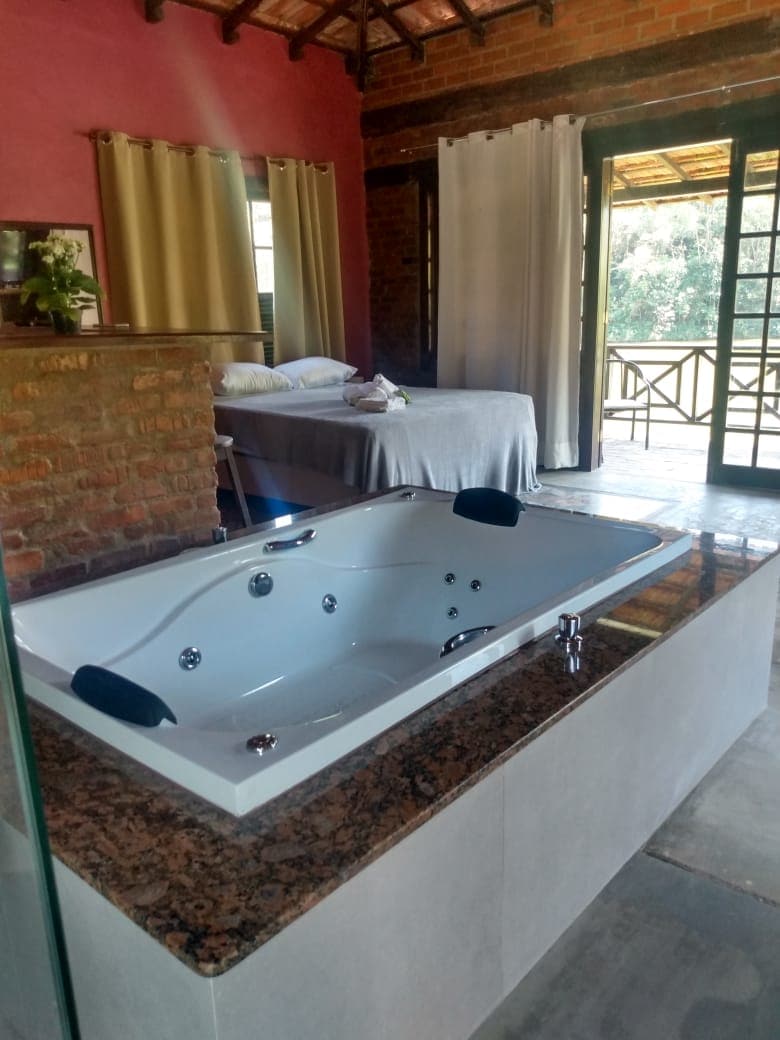 Cerque-se de estilo neste espaço excepcional. Construído e 1.000m de altura, com vista deslumbrante aberta. Lugar para relaxar e curtir momentos a dois. Construída em 2025, com pé direito de mais de 4 metros. Tornou-se um ambiente aconchegante e único, com uma lareira ecológica que divide os ambientes de sala e quarto, com uma grande cama king size com massageador, além de um banheiro cinematográfico. Com vista deslumbrante para um banho em banheira de imersão com sais de banho.