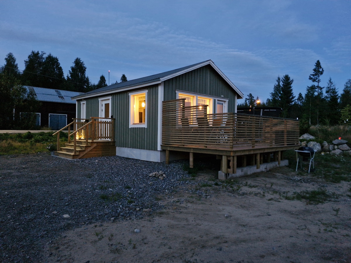 Welcome to our serene, stylish, tiny but cozy guesthouse, just a short walk from a beautiful lake and nestles next to a tranquil forest. This modern retreat offers the perfect blend of nature and luxury, featuring contemporary amenities and a relaxing jacuzzi that you may book in advance. Enjoy the peaceful surroundings while being only 15 minutes away from Umeå centrum. Ideal for couples, families, or solo travelers seeking a peaceful getaway with easy access to urban conveniences.