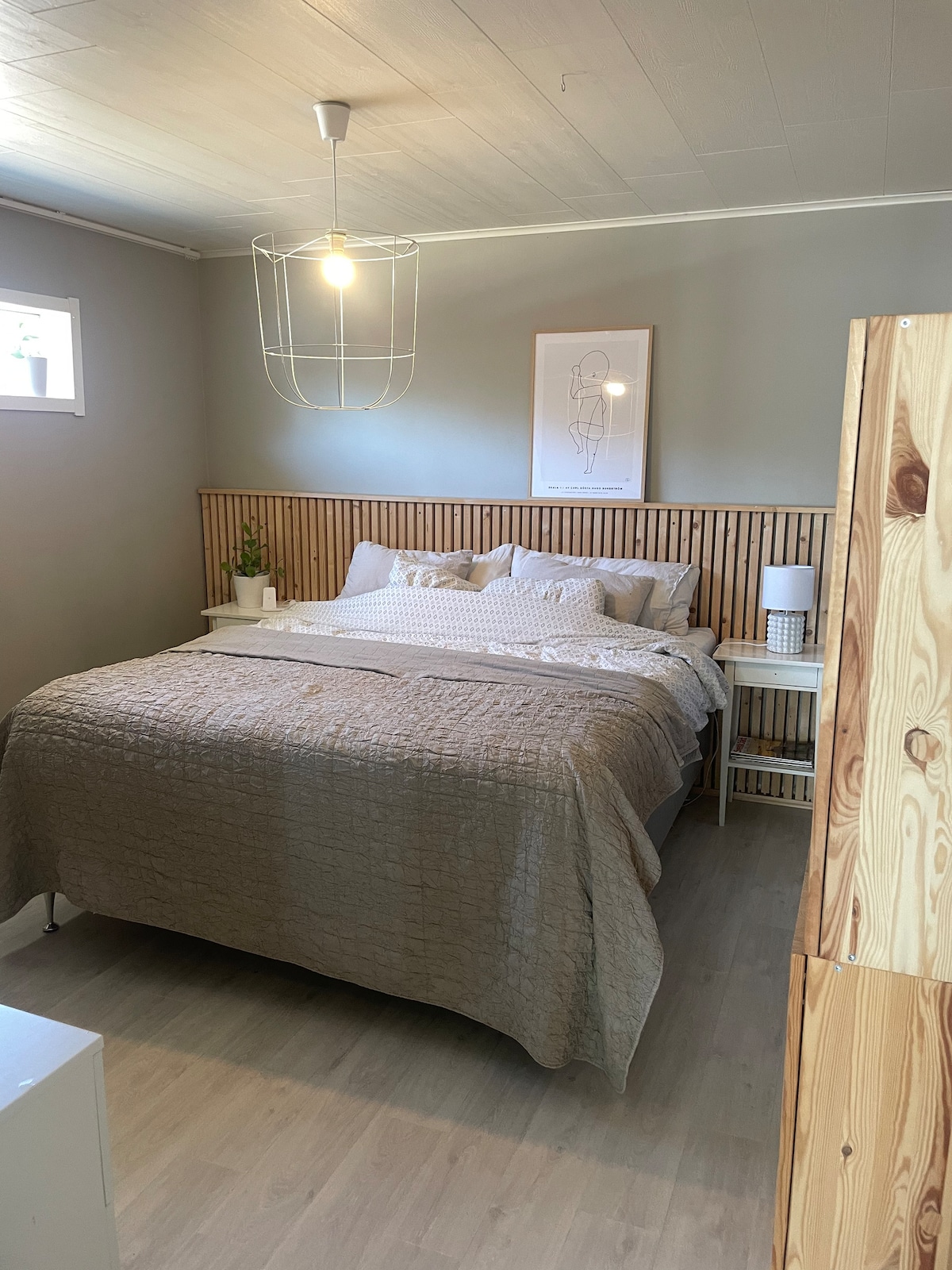 The apartment is experienced as its own accomodation. There are plenty of opportunies for a rich outdoor life. The house is located in a open landscape with location about 150 meters from a river. Fully equipped kitchen, living room with extra bed, dining room, bedroom with doubble bed, toilet and shower, Swedish sauna and garden with fireplace. 250/250 fiber internet with WiFi. Parking for car in front of house. Nothing is missing. If you need something we fix it for you. Key box with code.