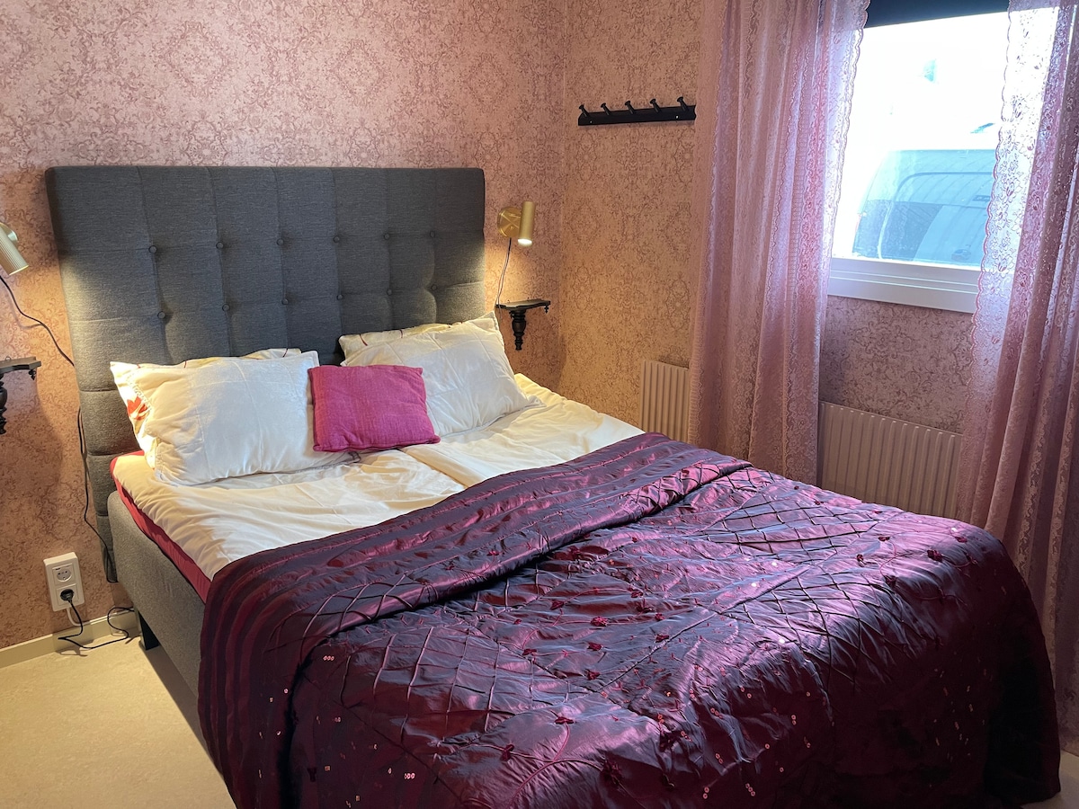 Här bor ni lungt och fridfullt tio minuter från Umeå. Eget hus (gårdshus) 40 kvadrat med ett fullständigt utrustat kök med diskmaskin. Huset består vidare av ett trevligt vardagsrum med TV och supersnabbt Wifi, 1 sovrum med två bäddar, även tillgång till extrabädd finns i form av en skön sov madrass att lägga på golvet. Toalett med dusch som även inrymmer en kombinerad tvättmaskin och torktumlare. Sköna fullstora sängar 80x200cm samt en extrasäng resårmadrass 80x200cm, med bäddmadrass.