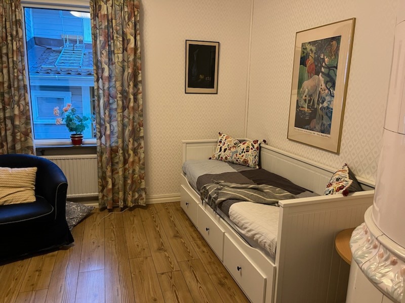Here you have your own apartment, in part of our house, suited for up to 4 people. An extra bedroom in a cottage a few meters outside can be used during summer. You have 4 km into the town square. Busstop 100meters away from the apartment taking you strait there passing the university on the way. Close to the apartment you have a pizzaplace, hairsalone, foodstore and the horsetracks.