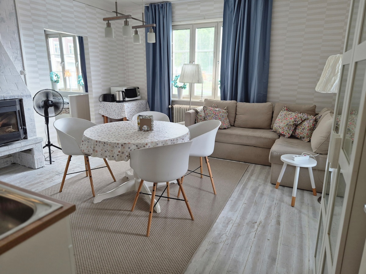 Apartments near the wind farm! This is a 3 room apartment with a total of five beds. Its total 3 appartments in one house. Available with 1 room with kitchen, 2 rooms and kitchen. Garage is available for rent. The apartments are fully furnished and just to move into.