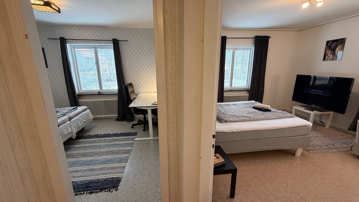 Lägenhetsboende med hög standard, i direkt anslutning till Öjestrands golfbana, Njurunda. Två sovrum. Stort och fullt utrustat kök. Vardagsrum med bäddsoffa, fåtölj och tv samt förvaringsutrymmen. Separata wc-rum och duschrum med tvättmaskin. Tillgång till hemmagym och stor balkong. Vid golfbanan finns restaurang med rättigheter, samt paddelbana. Ca 15 min. bilkörning till centrala Sundsvall. Finns ytterligare en lägenhet intill, ifall ni tex är ett större sällskap som vill bo nära varandra.
