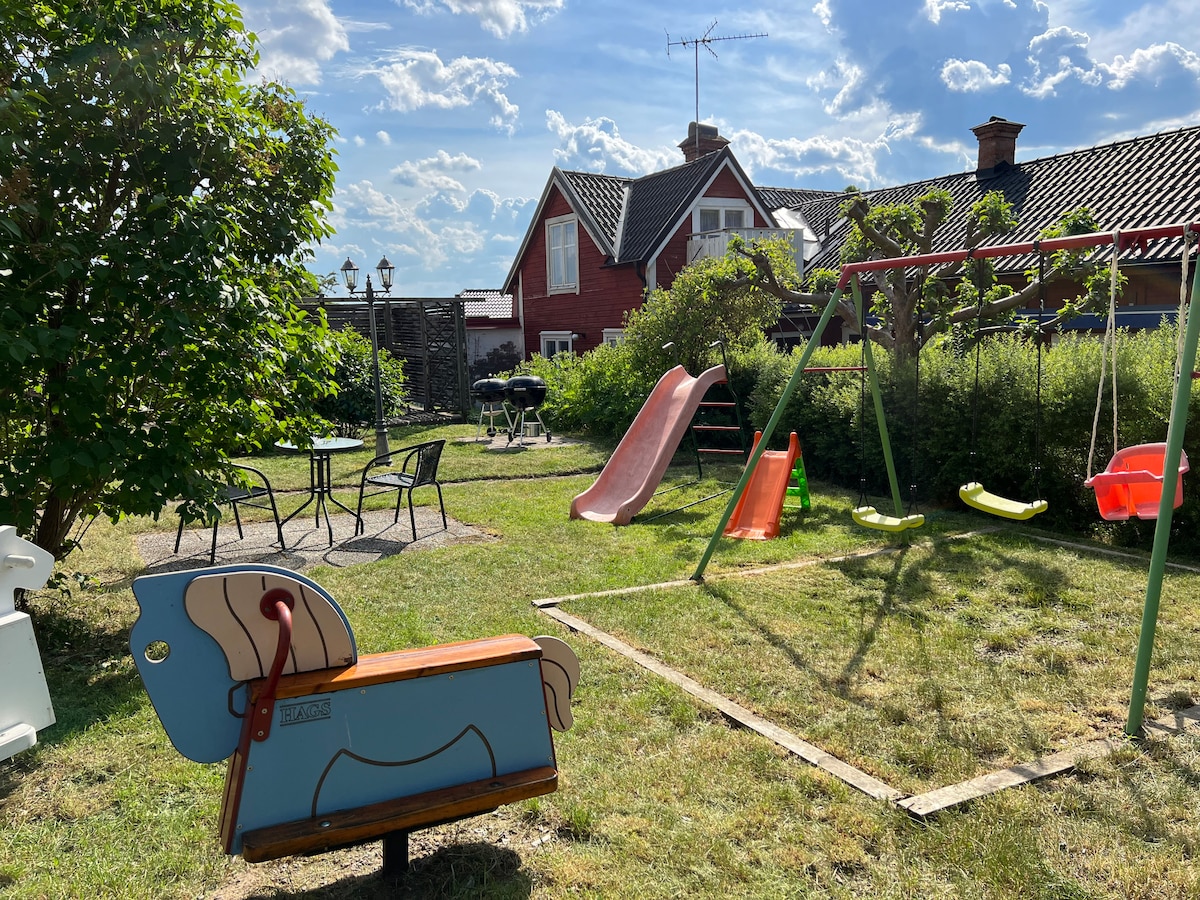 Det går att sova 4 pers om det är 2 barn. Det är bara några 100 m till ett jättefint bad i havsviken Syrsan. Där finns träningsredskap mm. Nära till Västervik Loftahammar Vimmerby Norrköping Söderköping och Linköping Du kan komma ut i Tjust skärgård med båtar från Västervik o Loftahammar Det är ca 65 km till Astrid Lindgrens värld. Nära till kättringsplatser. Ni kan njuta av lugnet i vår trädgård. Om ni inte vill städa efter er så gör vi det för en extra kostnad. 300 kr