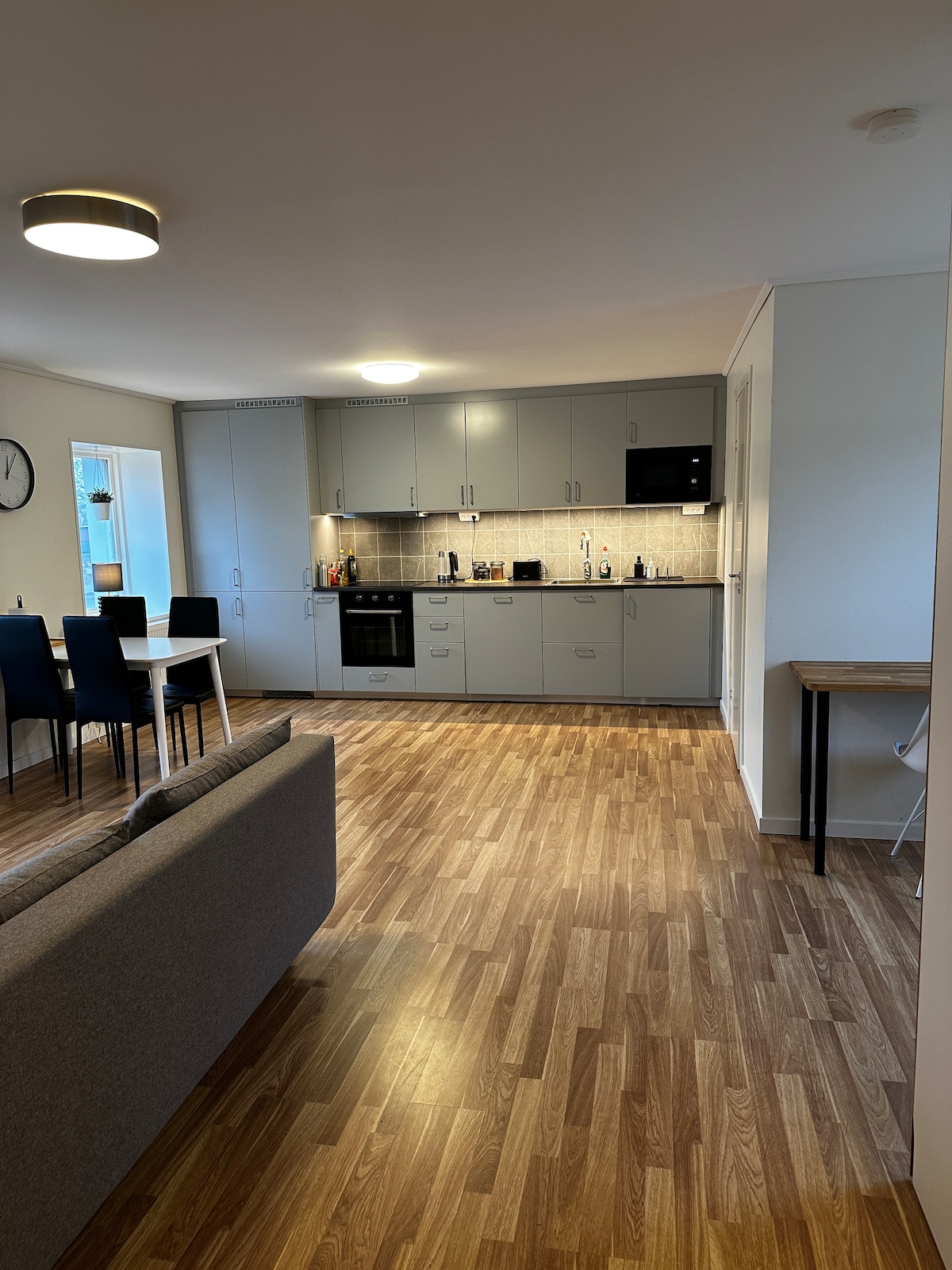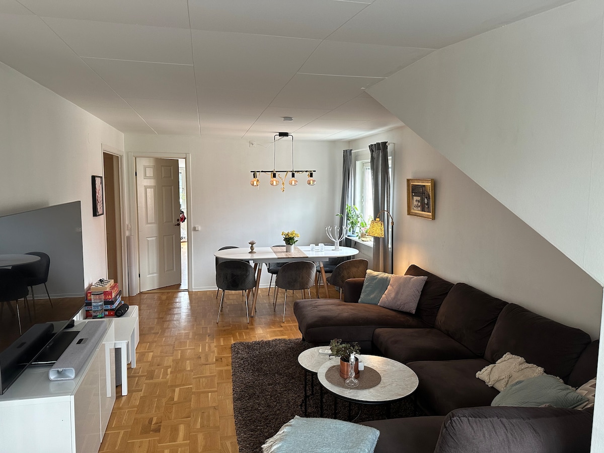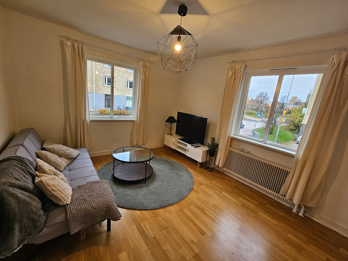Min moderna lägenheten har plats för upp till tre gäster. Njut av den stora balkongen med en mysig soffgrupp och fin utsikt över naturen. Området är lugnt och familjevänligt med skog och park i närheten för promenader och cykelturer. Lägenheten har TV med Netflix, HBO och Amazon Prime, samt diskmaskin och tvättmaskin. Du har även egen parkering. Nära finns flera restauranger, inklusive medelhavsrestaurang, pizzeria, Burger King och asiatisk restaurang. Jag ser fram emot att välkomna dig!