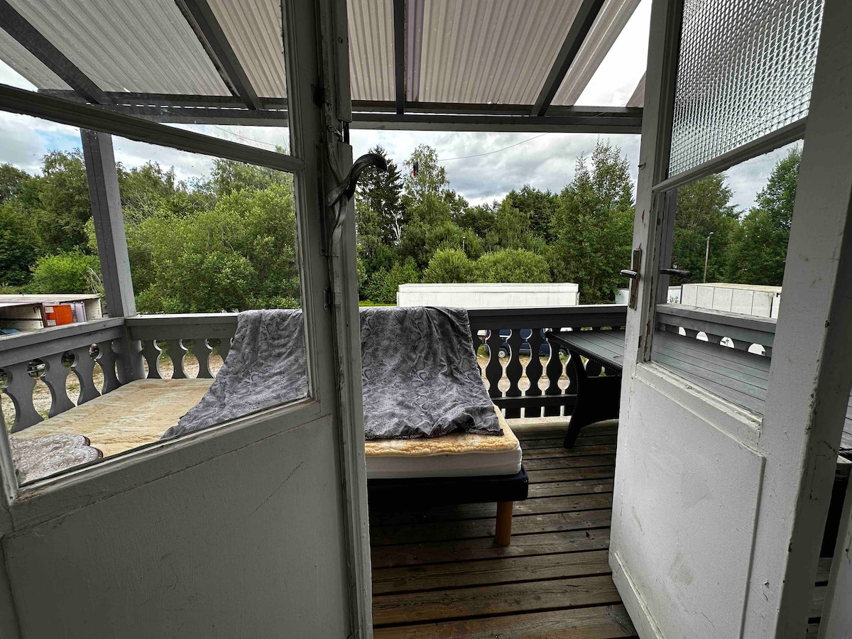 Din familj kommer att ha nära till allt när ni bor i detta centralt belägna boende. En tvåa med två enkelsängar och en bäddsoffa för två personer. 200 meter till busshållplatsen, 5 minuter till Coop Extra och 15 minuter till centrum. Grön utsikt med träd fulla av ekorrar och skogens skönhet gör denna bostad attraktiv samtidigt som den ligger nära stadens centrum.