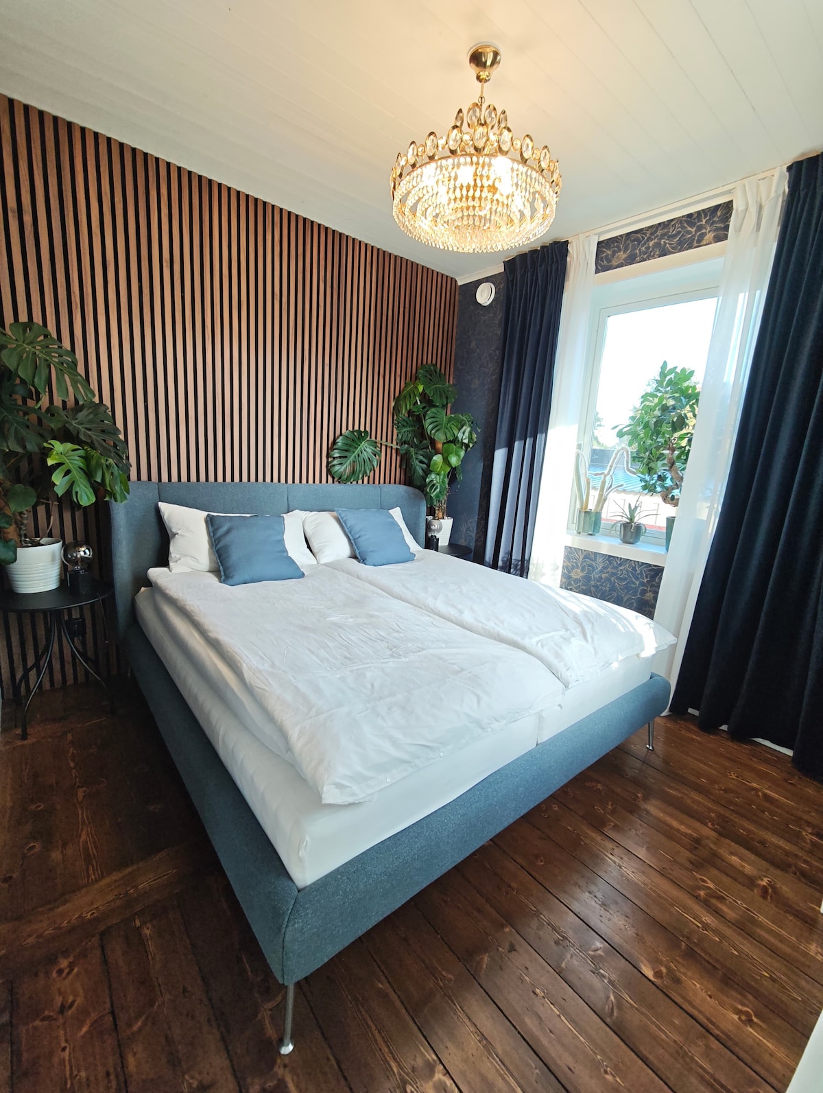 Cosy, modern, private guesthouse. 35 m2 studio with fully equiped kitchen and big bathroom. 4 m floor to ceiling. Private feeling, . Parking included. 1 km to city center and university, 1,5 km to central station and to Mälaren ( waterfront). We are a family with two children (10&12) who live in the big house.