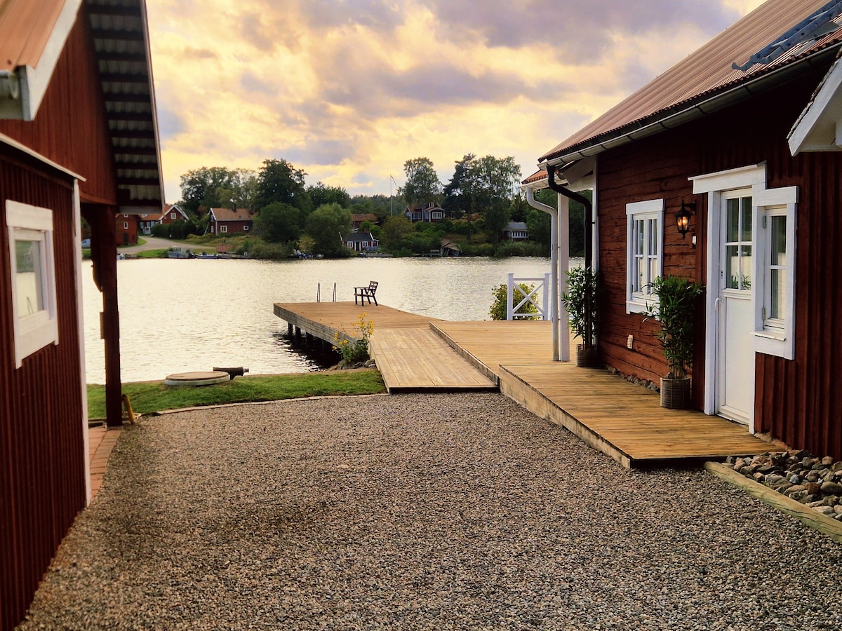 Luta dig tillbaka och koppla av i detta lugna, eleganta boende, en perfekt plats att njuta av den vackra naturen, långt bort från hektiskt liv. Här bor du i ett modernt nybyggt gästhus på ca 30kvm + loft - ett paradis på jorden. Belägen i en liten by vid Hjälmaren - ca 5min. promenad till stranden. Det ingår ett mindre privat däck med utsikt över skog samt ett stort gemensamt däck med tillgång till gemensam pool , vedeldad badtunna, gasgrill och vedeldat ofyr. Även stora huset kan hyras ut.