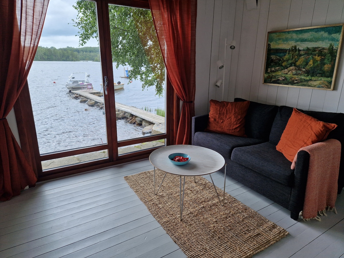 Nyrenoverad stuga med bastu vid sjö