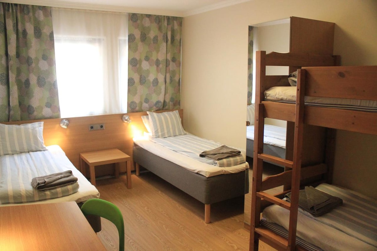 Family room - 2x90cm beds + 1 bunkbed TV & refrigerator in the room. Free Wi-fi is included. -Shared Bathroom -Shared Shower -Shared Kitchen