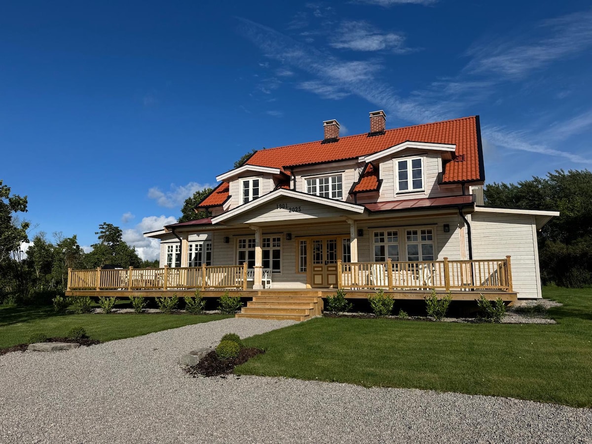 We rent out our whole villa by our farm. It is located next to the south shore of Vänern. Due to covid we only host one company. Rooms -4 bedrooms with a total of 7+1 beds. -2 bathrooms -Fully equipped kitchen -The entire house is 200 m2 with two floors and seven rooms. Other -Cleaning incl. -Big garden with furniture. -Bed set and towels incl. -Free washing machine. 35 km west of Lidköping. Läckö Castle - 50km Kinnekulle - 45 km Trollhättan - 35 km Halle- and Hunneberg 20 Hindens rev 35