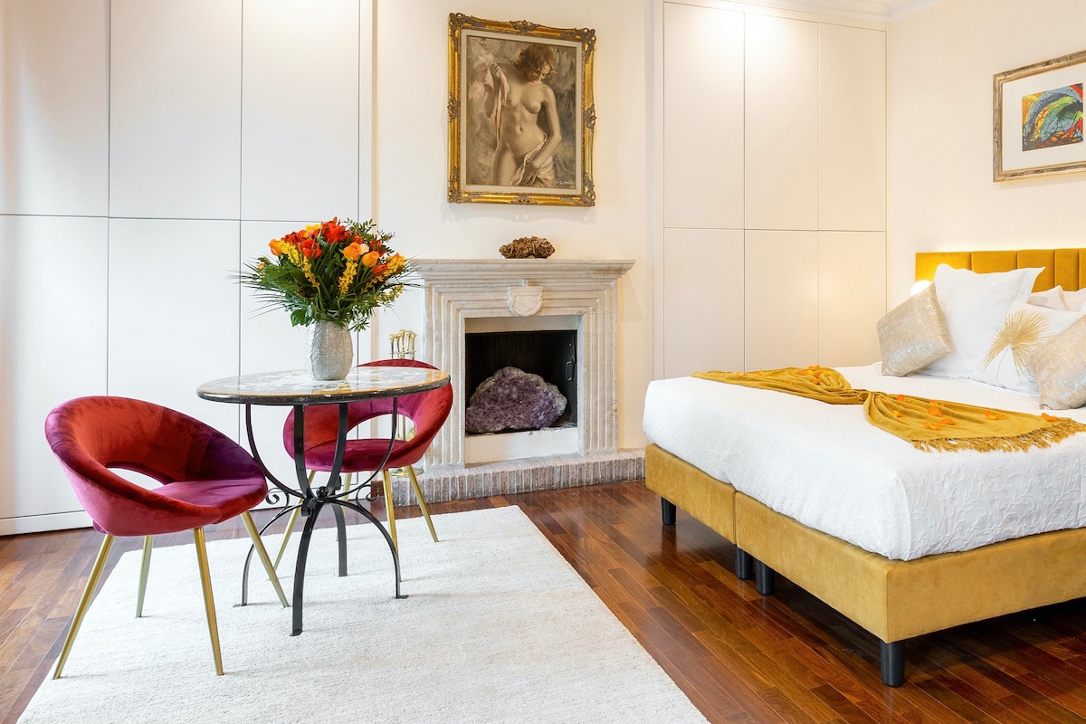 Light the large stone fire and relax with a book in this elegant home overlooking Via dei Banchi Nuovi. Coffered ceilings cap cozy rooms in relaxing, neutral tones accented by designer furnishings and owner's original paintings. This charming fully renovated house is located in one of the most beautiful, ancient and vibrant area of the center of the Eternal City. We also like to offer eco-sustainable hospitality: we use electricity from renewable sources, organic products.